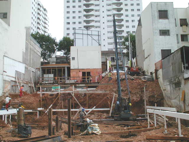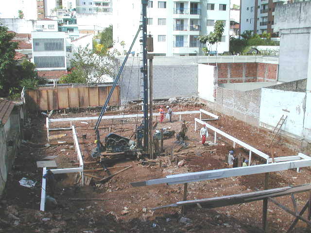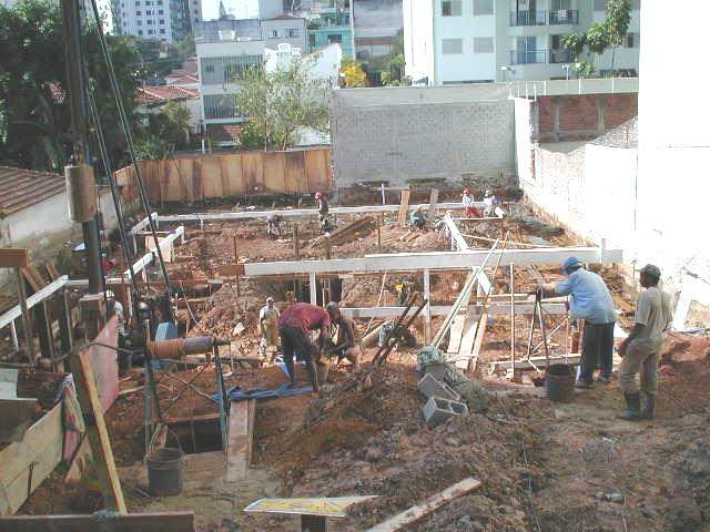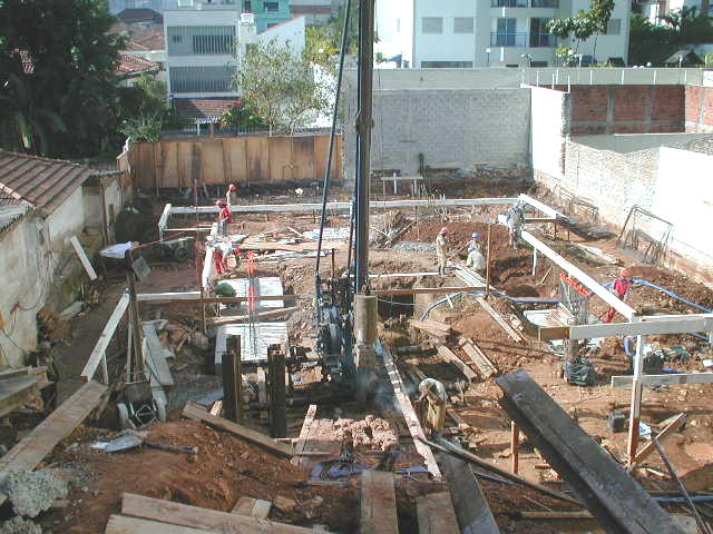 - Foto em 09/05/03 - Iniciando tubulões para o corpo do prédio.