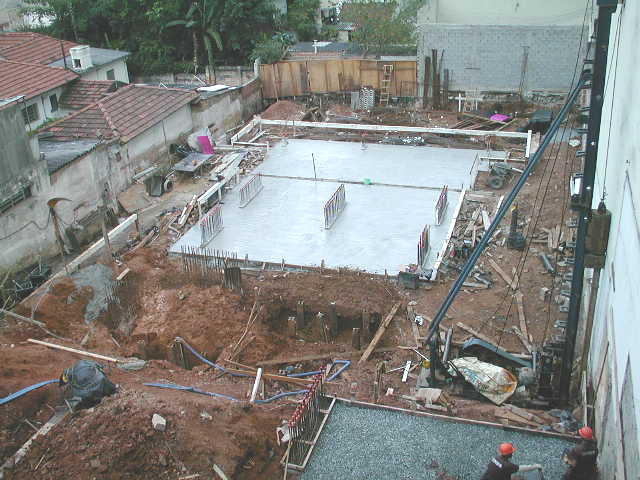 - Foto em 10/06/03 - Concretando laje do 3o.SS, e cravando estacas da periferia.